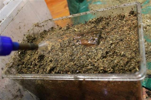 2.ปูพื้นชั้นสองไม่ต้องกดแน่นสูง5-10ซม. แต่ด้วงคีมต้องวางไม้ผุก่อนจึงค่อยปูทับ