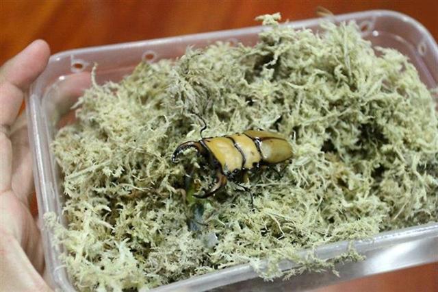 3.วางเปลือกไม้และอาหารให้ด้วง แล้วนำไปไว้ในที่มืดที่ไม่มีการรบกวน และ ไม่ควรให้หน้าดินแห้ง คอยฉีดน้ำให้และเติมอาหารด้วงเสมอ