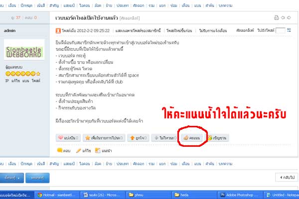 เวบบอร์ดในขณะนี้เปิดระบบให้คะแนนน้ำใจแล้วนะครับ