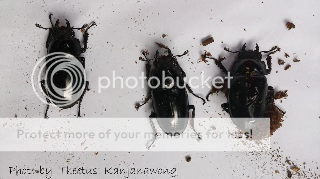 วันนี้ขอมารีพอทย์เรื่องด้วงคีมครับ เรื่องมันเริ่มจากเมื่อเดือนตุลาคมปีที่แล้วผมได้เจอด้วงคีมตัวเมียตัวหนึ่งโดยบังเอิญ ตัวเมียมีสีดำยาวประมาณ 50 มิลลิเมตร ผมไม่รอช้าจัดตู้เพาะเจ้าด้วงตัวนี้ทันที โดยกล่องพลาสติกใสขุ่นขนาดประมาณ 7x12x9 นิ้ว  ปูด้วยไม้ผุบดหนา 12 -15 เซนติเมตรวางไม้ผุขนาดใหญ่ไว้ตรงกลางกล่องแบบครึ่งท่อนอยู่ใต้ไม้บดอีกครึ่งลอยพ้นผิวไม้บด